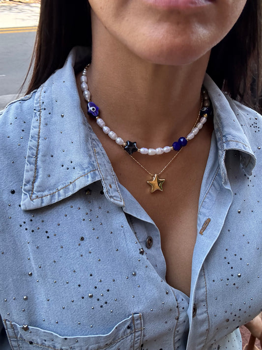Protection pearly blue necklace